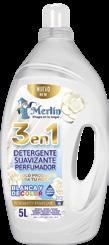 DETERGENTE LÍQUIDO Merlín, 3 en 1 blanca y color, 5 l 75 lavados
