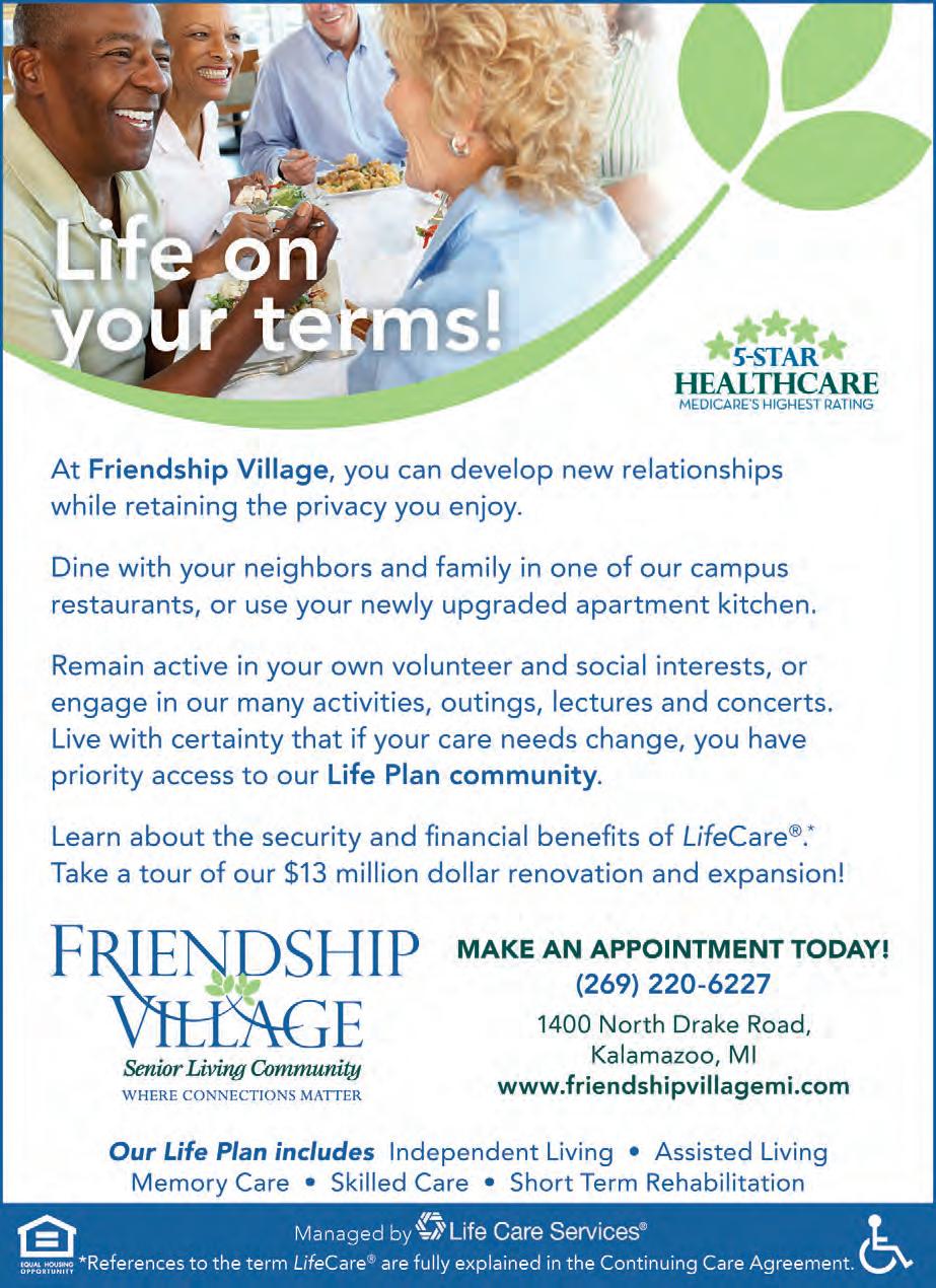 “Where Connections Matter” 1400 North Drake, Kalamazoo 269-381-0560 www.friendshipvillagemi.com