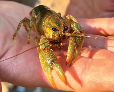 This handsome little critter is a type of crayfish called a paintedhand mudbug. The Stew Crew found it prowling the rocks in the lake shallows near the creek at SWMLC’s Pilgrim Haven Natural Area near South Haven. It was an unusual sight because this burly native crayfish usually spends its time hanging out in a wet, palatial, underground burrow that it digs for itself.