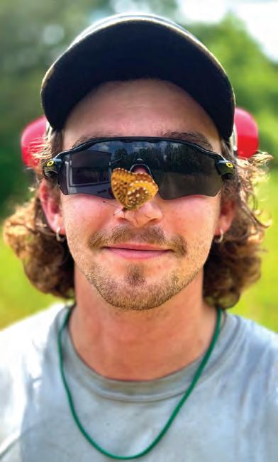 A very friendly fritillary couldn’t resist landing on ‘butterfly magnet’ Lukas Bolton while he was working at one of our refuge preserves on the Paw Paw River. Some folks just have that kind of charisma!