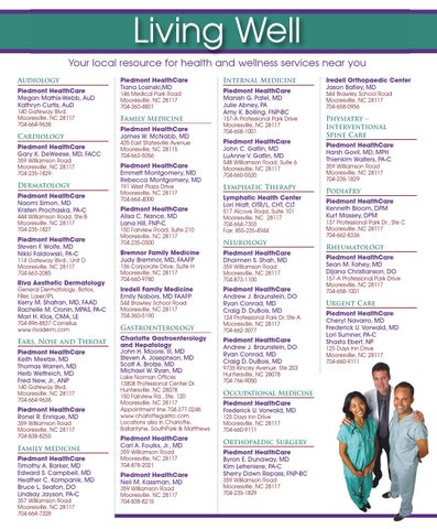 Living Well Your local resource for health and wellness services near you Audiology Piedmont HealthCare Megan Mathis-Webb, AuD Kathryn Curtis, AuD 140 Gateway Blvd. Mooresville, NC 28117 704-664-9638