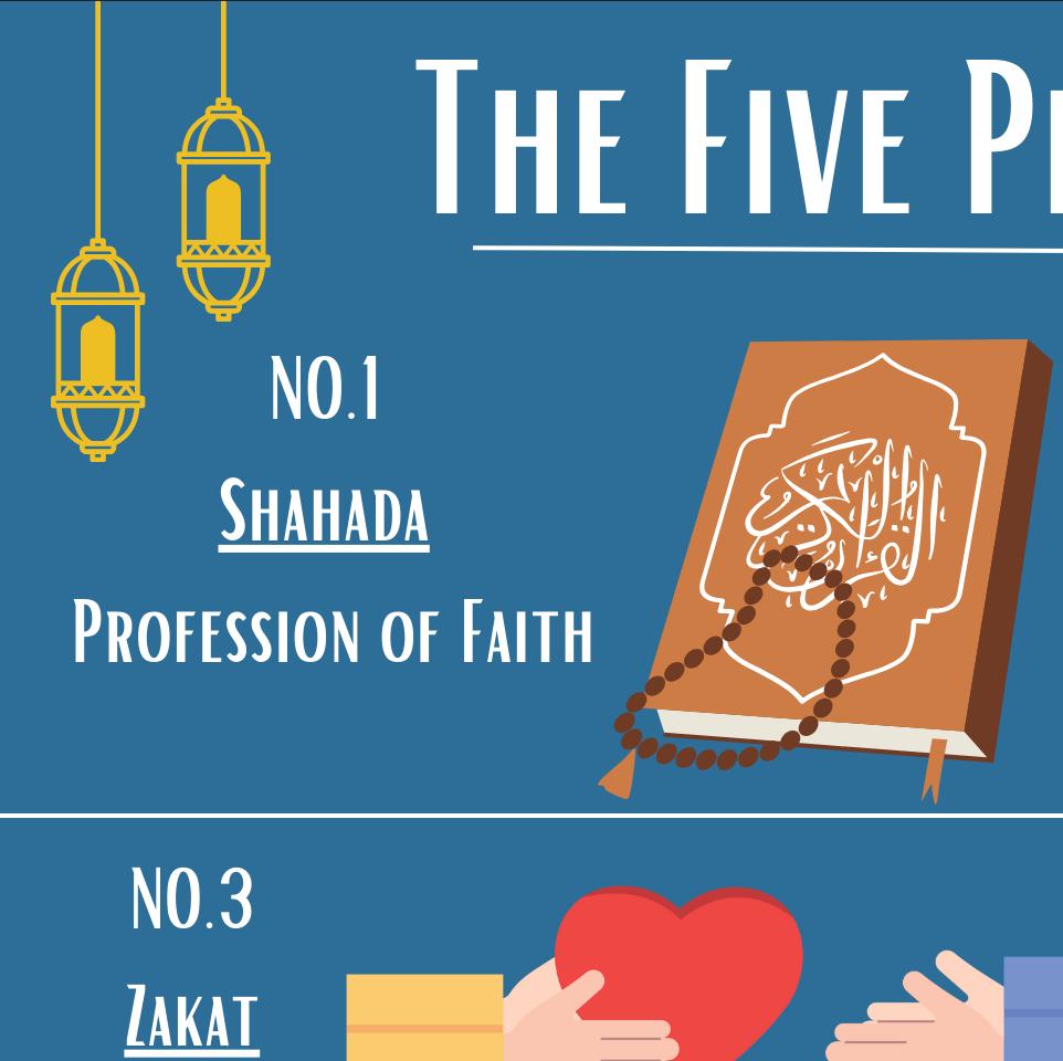 The Five Pillars of Islam include Shahada (faith), Salah (prayer), Zakat Al-Fitr (act of giving), Sawm (fasting) and Hajj (pilgrimage), according to the same website.
