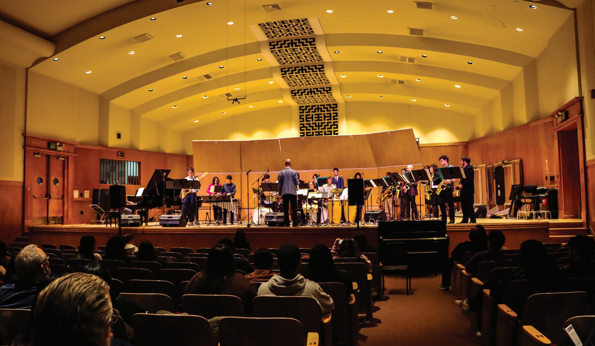 MELISSA ALEJANDRES | SPARTAN DAILY Audience members sit back and relax on Monday night to listen to Latin jazz ensembles in the Music Hall.