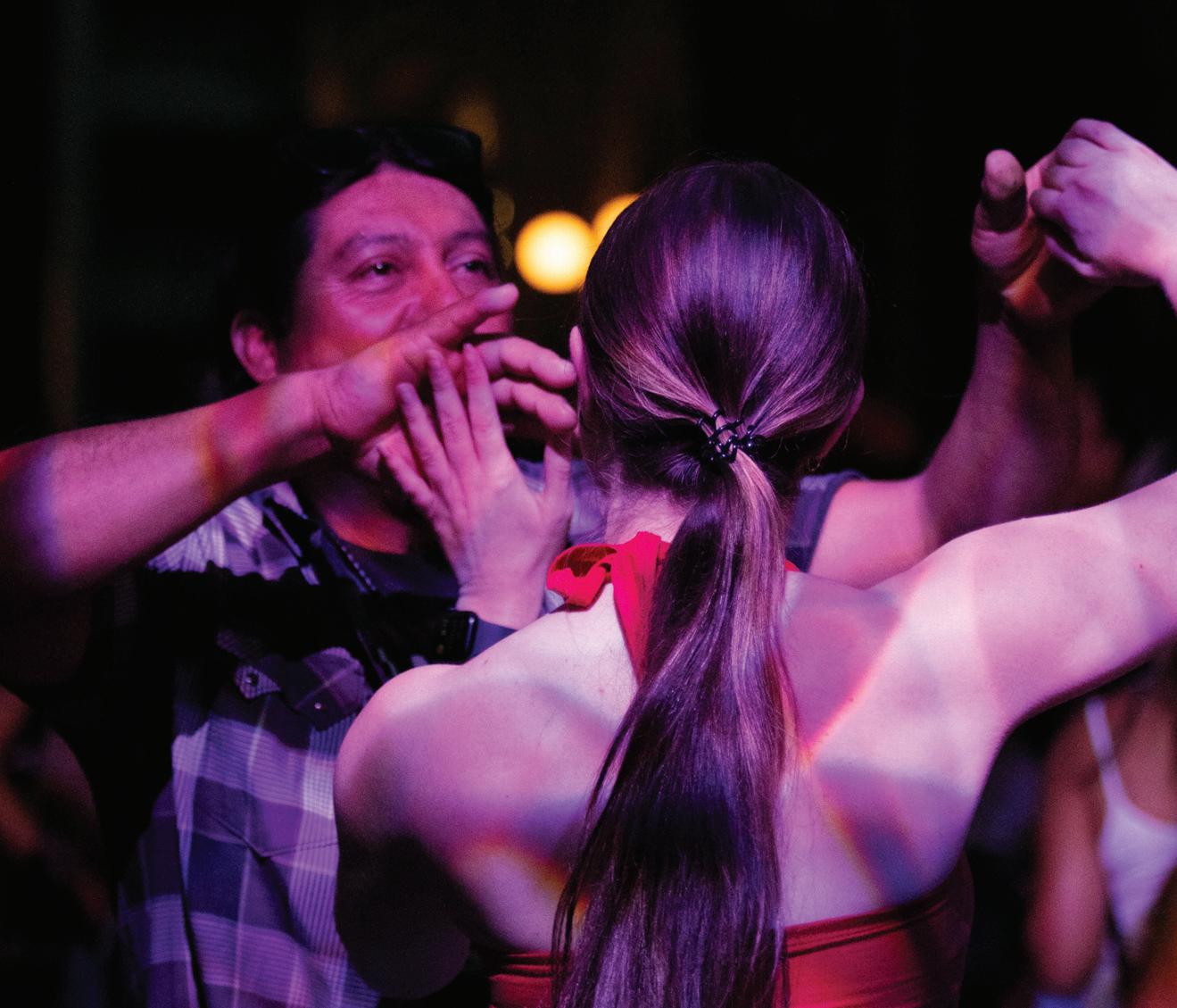 #2: Sandy Chao of Mambo Gravvin and John York lead a salsa dance lesson at the beginning of the event.