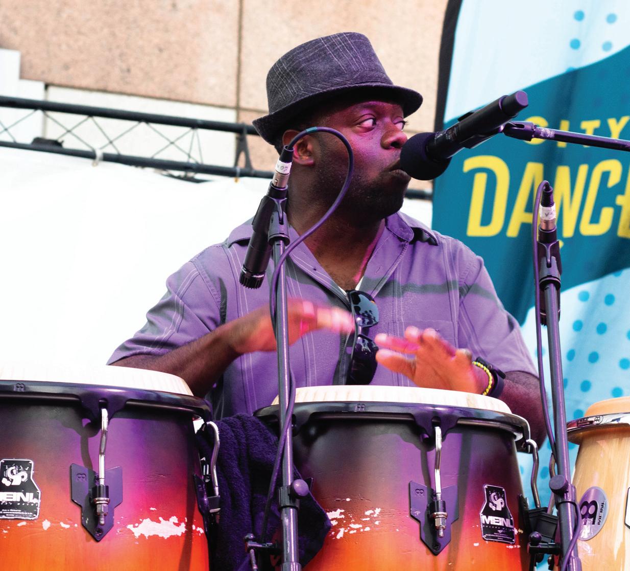 #1: Carlitos Medrano sings and plays percussion for the audience.