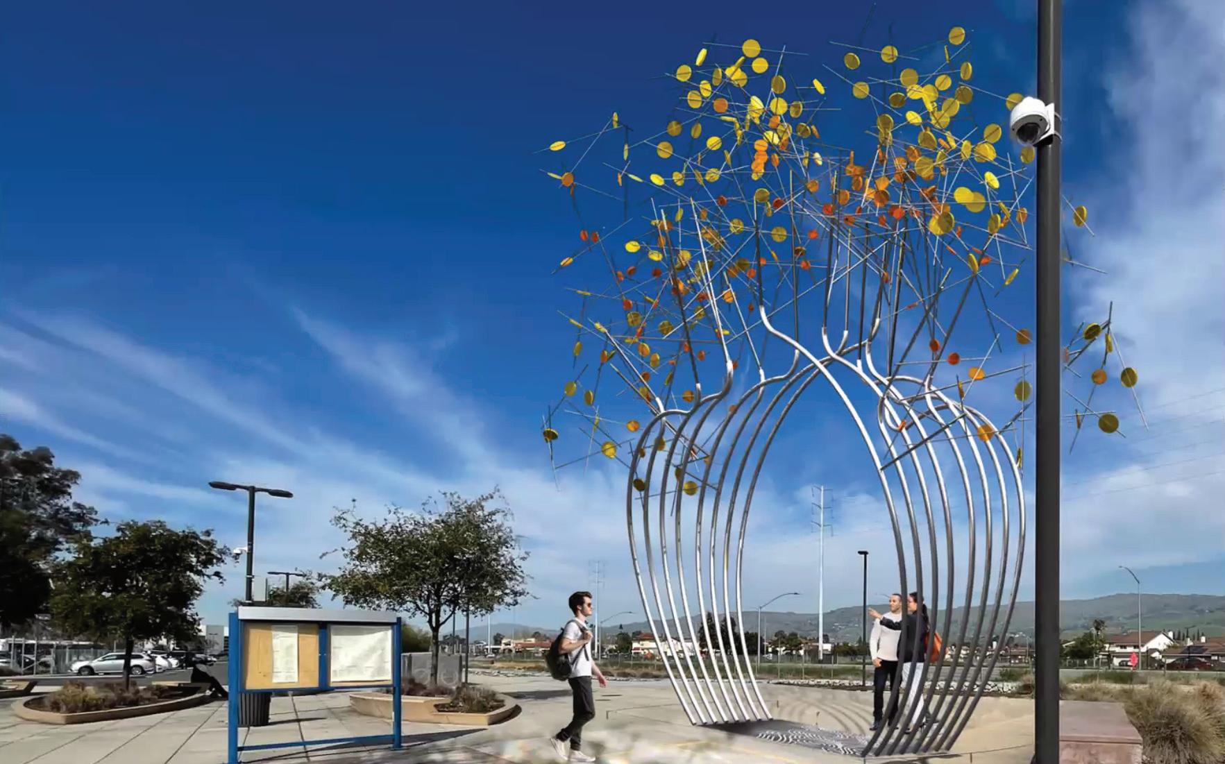 The artwork will be located by the bus terminal that connects the plaza to Eastridge Mall. It will be about 12 feet away from the base of the stairs, leading to the train platform.