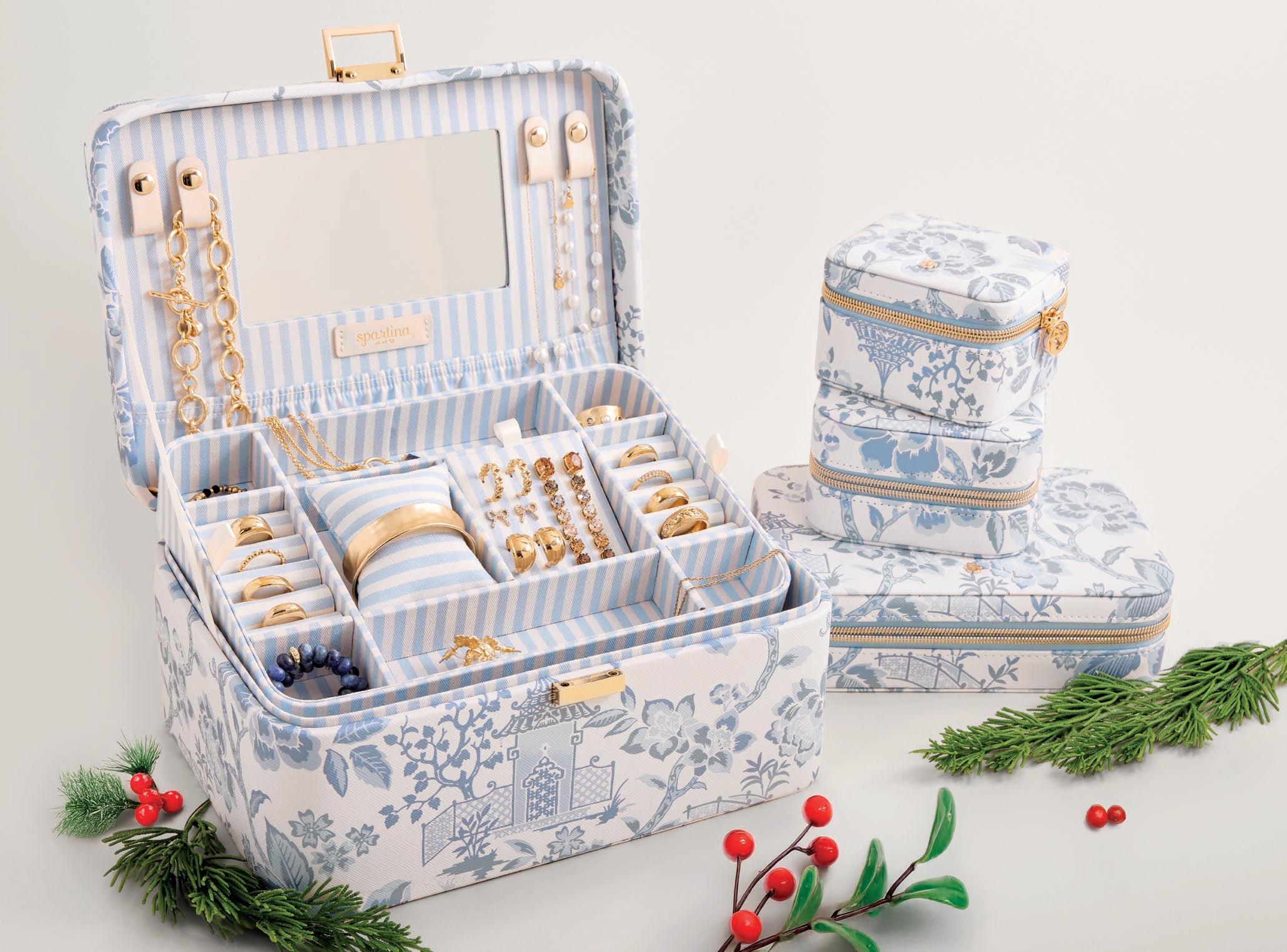 Medium Desktop Jewelry Case Garden Toile $136 | XL Jewelry Travel Case $64 | Stow & Go Jewelry Travel Case $48 | Jewelry Mirror Travel Case $58
