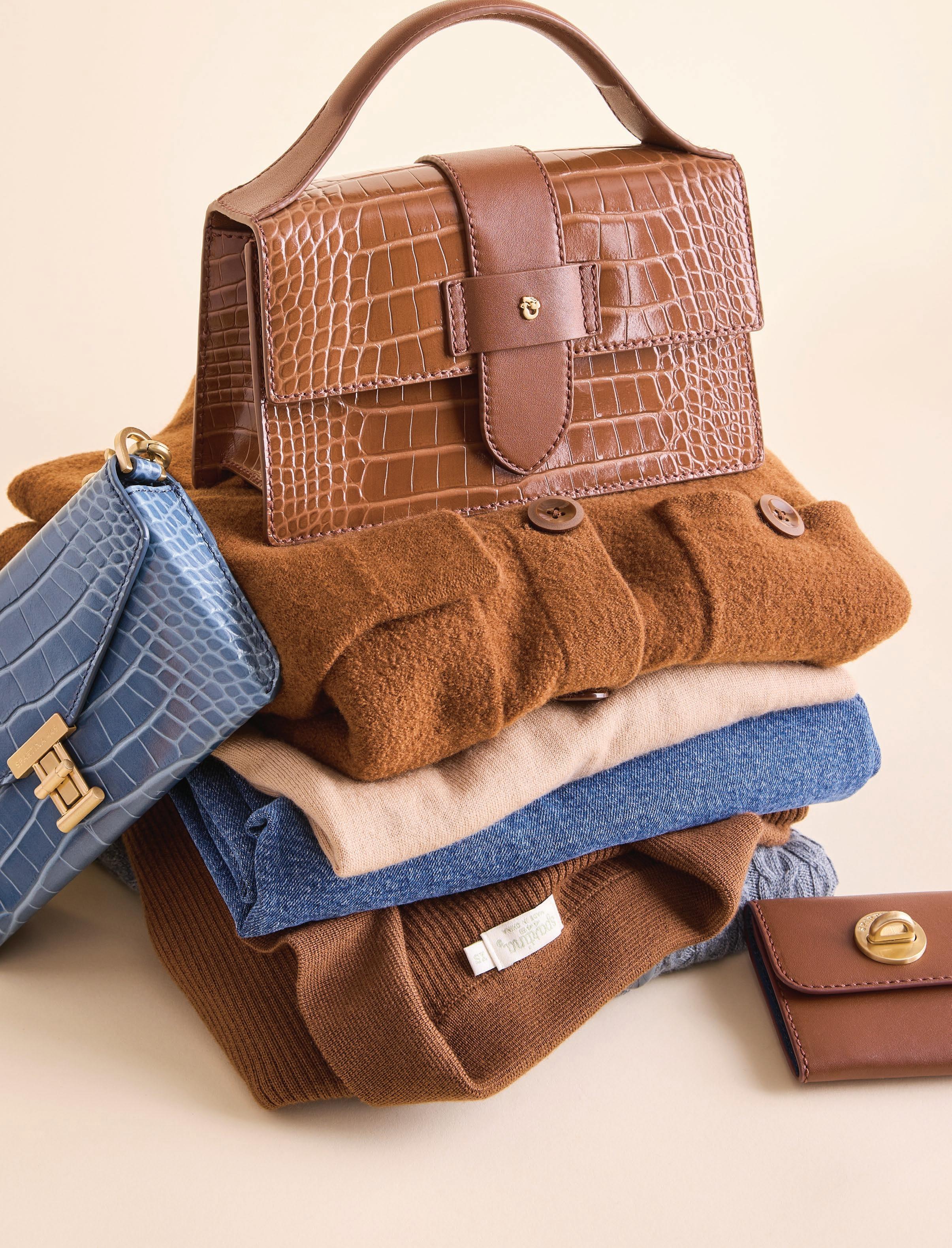 Siren Lela Crossbody Penny Croc $248 | Maeve Sweater Jacket Toffee $268 | Siren Cassie Indigo Croc $178 | Laurel Crewneck Sweater Sesame $188 | Rory Wide Leg Jean May River Wash $148 | Nellie Sweater Polo Toffee $228