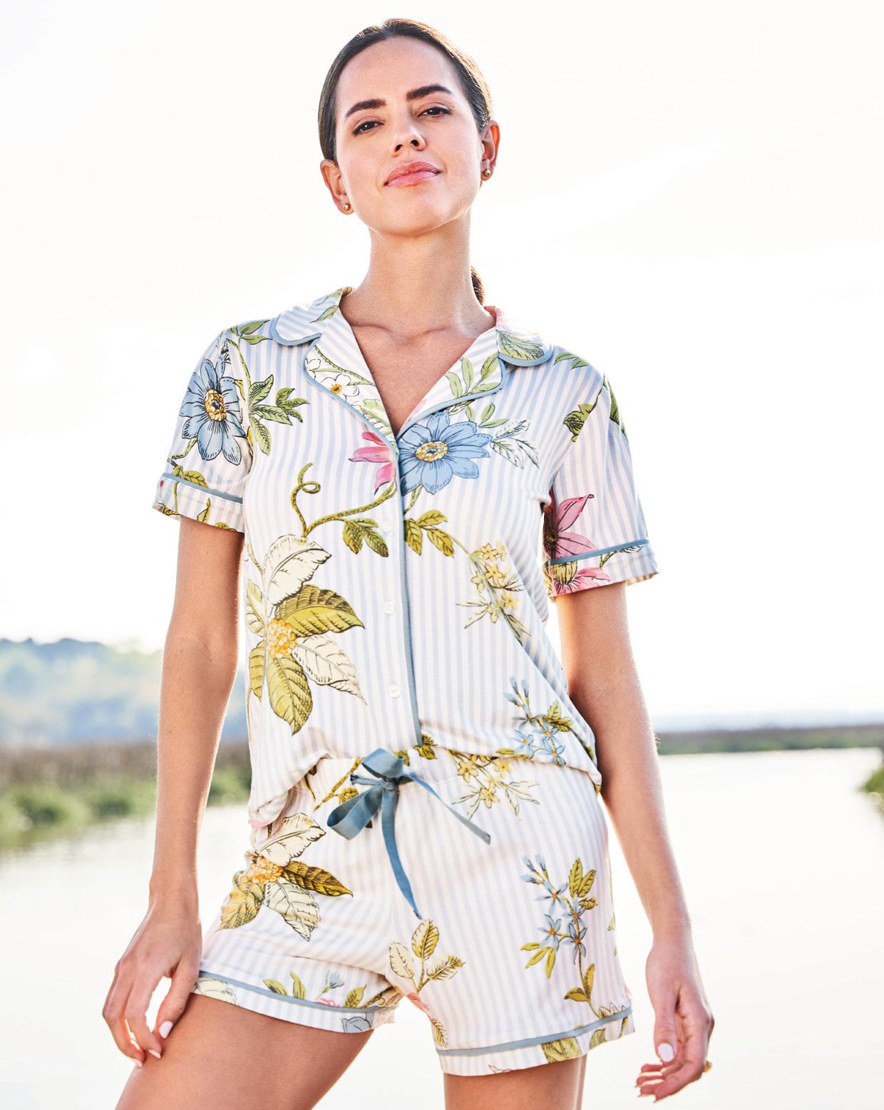 Blue $72 | Pajama Short Floral Vine Stripe Blue $58