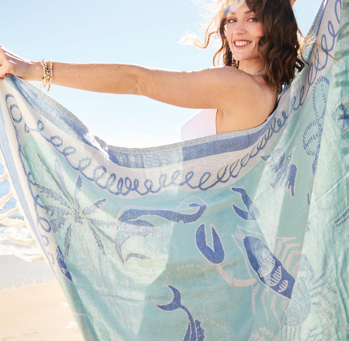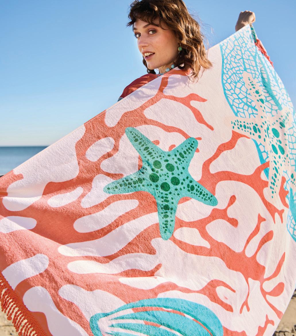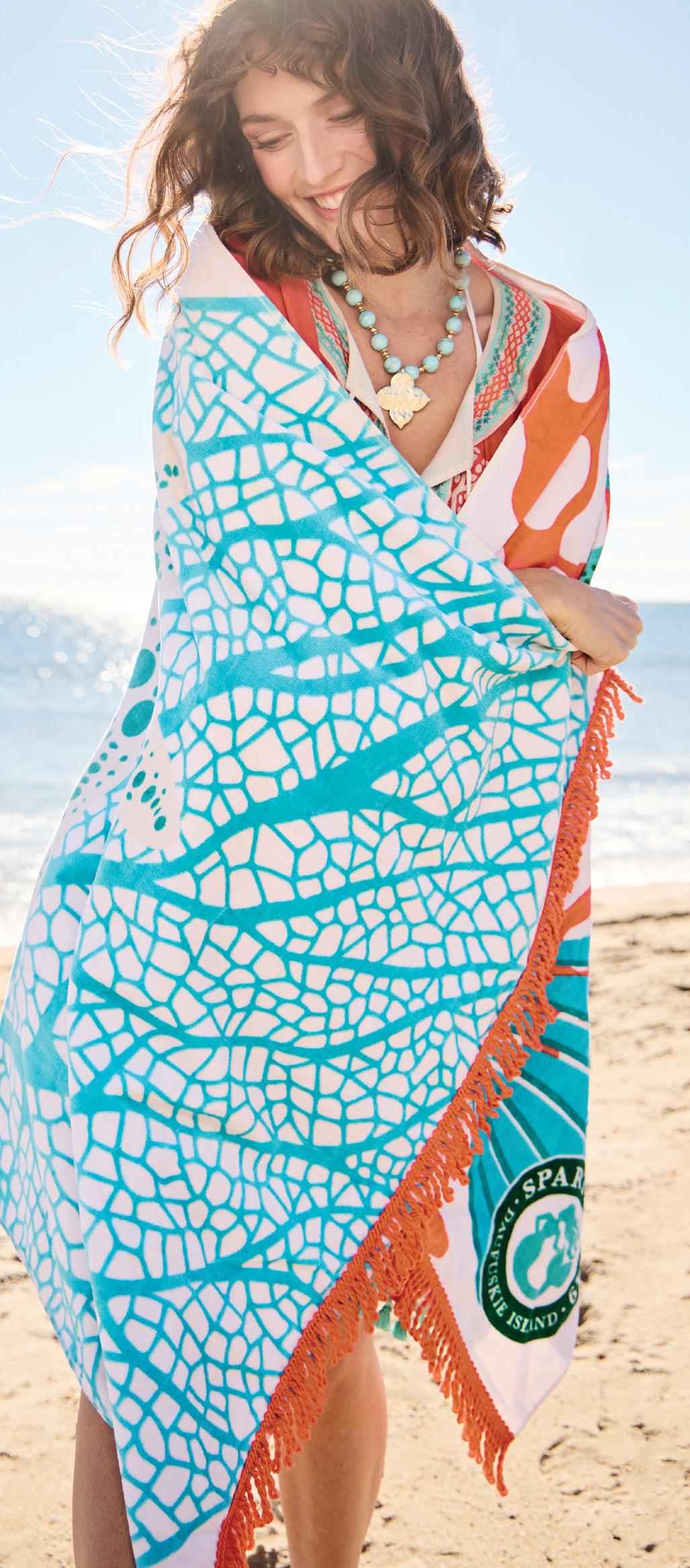 The forecast is calling for bright coral patterns and sea life style. From towels and cover ups to beach bags and accessories, we have it all.