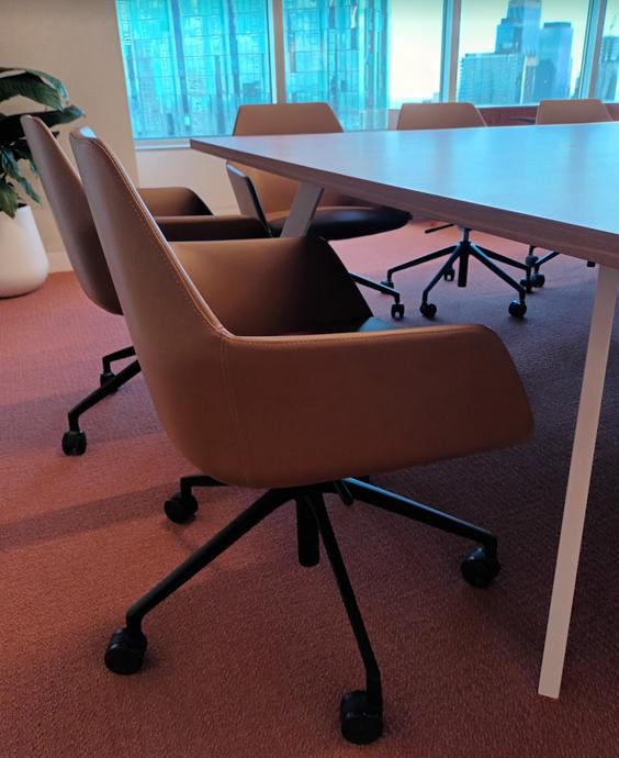 Available with Steelcase and Designtex fabric, leather, or vinyl as well as COM (customer’s own material) 3D Knit material available on the chair back with matching fabric seat, or with a seat fabric of your choice.
