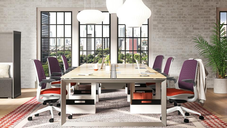 Think challenged what a traditional chair could do and how sustainable it could be with thinking of the circular economy: Designed with fewer parts for ease of recycling and even quicker disassembly, Think incorporates more recycled content making up to roughly a third of the chair’s weight This also allows for easy reassembly