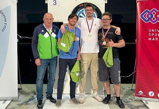Naslednji dogodek je bilo državno univerzitetno prvenstvo v elektronskem pikadu, ki je potekalo 24. 4. 2025 na Ptuju. Na tekmovanju smo se zbrali študentje »pikaderji« iz celotne države. Tokrat sem našo fakulteto zastopal sam v posamični kategoriji. Zbralo se je 15 igralcev, med katerimi praktično nisem imel konkurence, saj sem vse tekme zmagal brez izgubljenega niza z 2 : 0, 2 : 0, 2 : 0 in 3 : 0 ter osvojil zlato medaljo.
