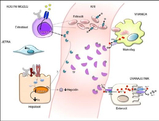 7. Kako imenujemo transmembranskega prenašalca, s pomočjo katerega se železo sprosti iz enterocitov v krvni obtok?