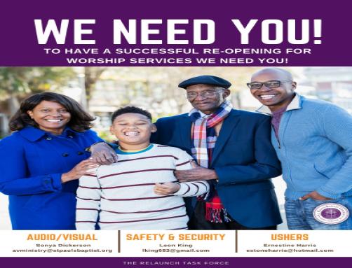 We will continue to closely monitor COVID 19 data locally and nationally over the next few weeks. We will revisit COVID19 mitigation strategies for St. Paul’s Baptist in October. We thank you for your cooperation.
