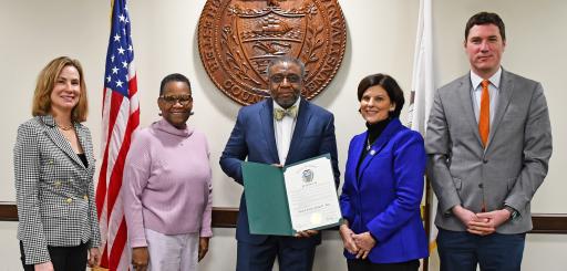 Commissioner Michelle Kichilne, Rev. Dr. Richelle Gunter (St. Paul's Baptist Church), Reverend Dr. Wayne E. Croft Sr. (Pastor, St. Paul's Baptist Church), Commissioner Marion Moskovitz, Commissioner Josh Maxwell