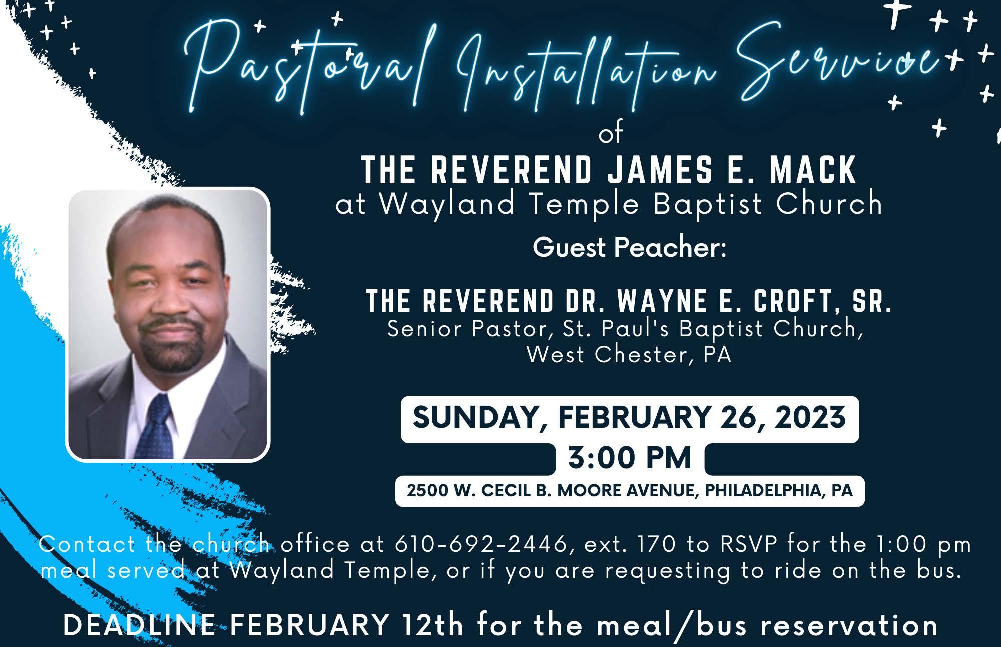 Thursday Feb. 16, 2023, 5:30 PM Rev. Dr. Wayne E. Croft, Sr. Pastor, St. Paul's Baptist Church, West Chester