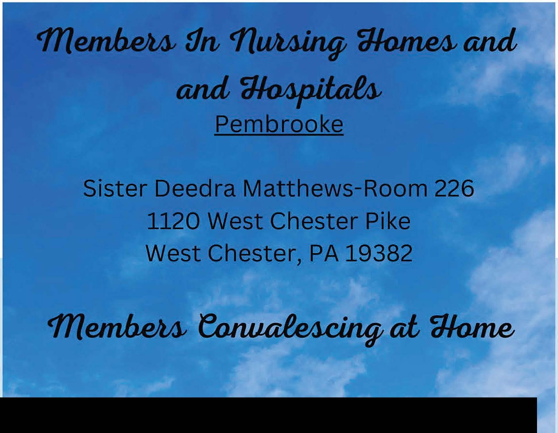 Greeting our Visitors…….…….…….......................... Sister Rita Waters