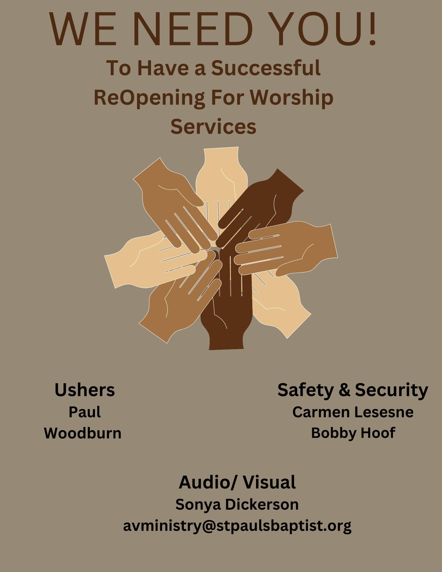 If you have questions, or would like to know more, please see Sis. Shirley Haines, Sis. Rita Waters, or Bro. Larry Wright.