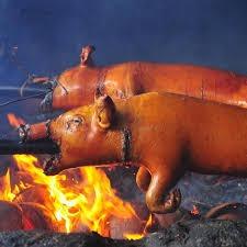 Dagingbabiyangdibumbui denganrempah-rempahkhas Balidandipangganghingga kulitnyagaring.
