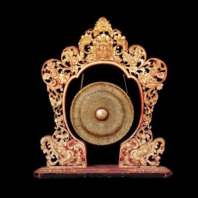 alatmusikBaliberbentuk datardandihiasiukiran, dimainkandengandipukul.
