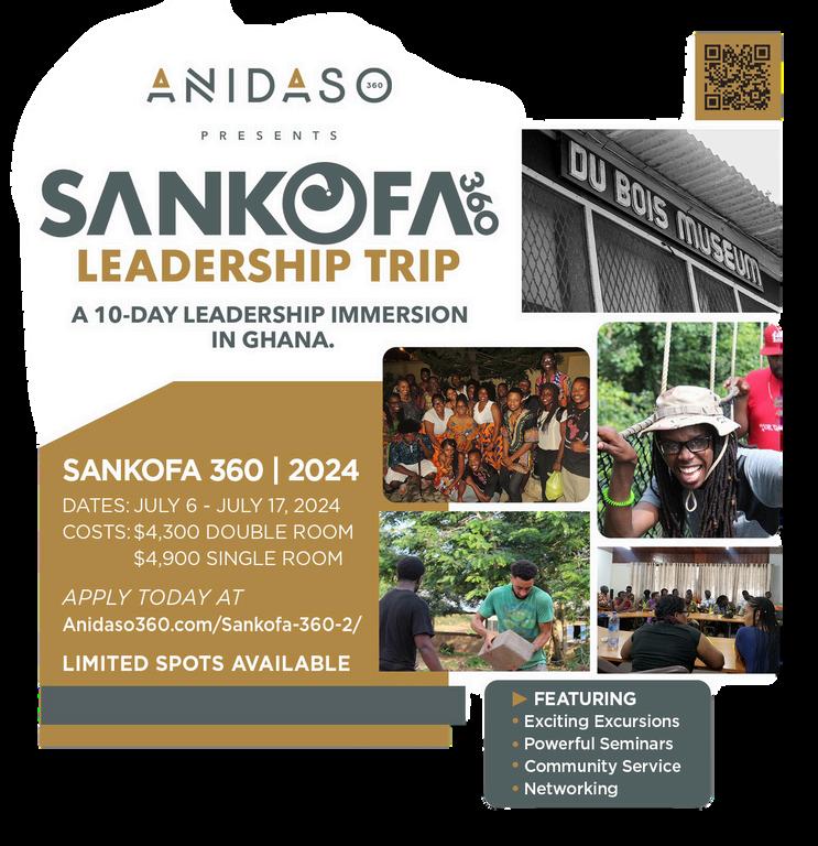 The Mission of“Sankofa360:TheELEVATEDExperience” SpokenWordElevated&SpeakOnItMedia,LLCare partneringwithAnidaso360toempowerindividualsof Africandescentthroughholisticdevelopmentencompassing spiritual,mental,physical,andpsychosocialwell-being “Sankofa360:TheELEVATEDExperience,”facilitates transformativeexperiencestoELEVATEart,culture,and therapyforCreatives,BusinessOwnersandAdvocatesofthe Arts,tofosteradeepconnectionwithourculturalancestry torealizeourfullestpotentialinGhana,WestAfrica