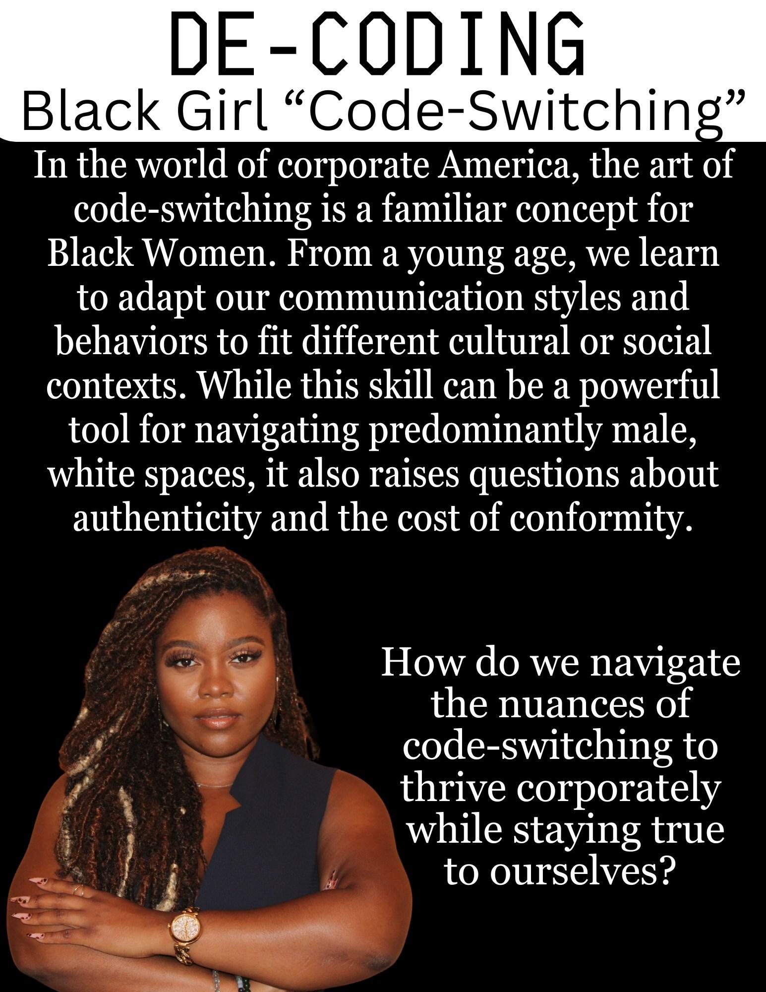 For some Black women, refusing to code-switch is an act of reclaiming our authenticity and cultural identity in corporate spaces. It's a declaration that we refuse to compromise our true selves or suppress our cultural heritage to fit into corporate molds.