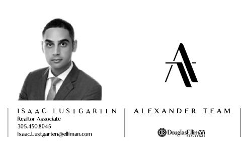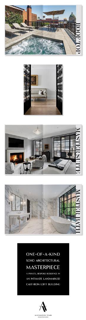 4 NUMBER ONE IN THE NATION. By large team volume per WSJ Real Trends & Tom Ferry the thousand list of 2020. The industry’s most connected approach to ultra-luxury real estate. TheAlexanderTeam.elliman.com @AlexanderTeam Oren Alexander, Lic. Assoc. R. E. Broker, 212.350.8561, Tal Alexander, Lic. R. E. Salesperson, 212.350.8541 © 2020 Douglas EllimanReal Estate. Equal Housing Opportunity. 575 Madison Avenue, New York, NY 10022. 212.891.7000. AD CAMPAIGN SPREAD Design Fee $2,000