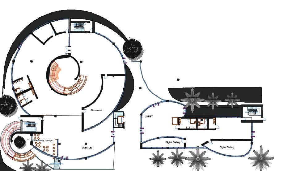 This draws inspiration from the form of a jellyfish. The building is a dynamic, adaptable space that responds to its users' needs. Strategically placed openings allow natural light to penetrate the interior. While most are oriented north for diffused lighting, a clockwise-skylight provides passive light through out the day.The result is a space that harmonizes form, function, and sustainability.