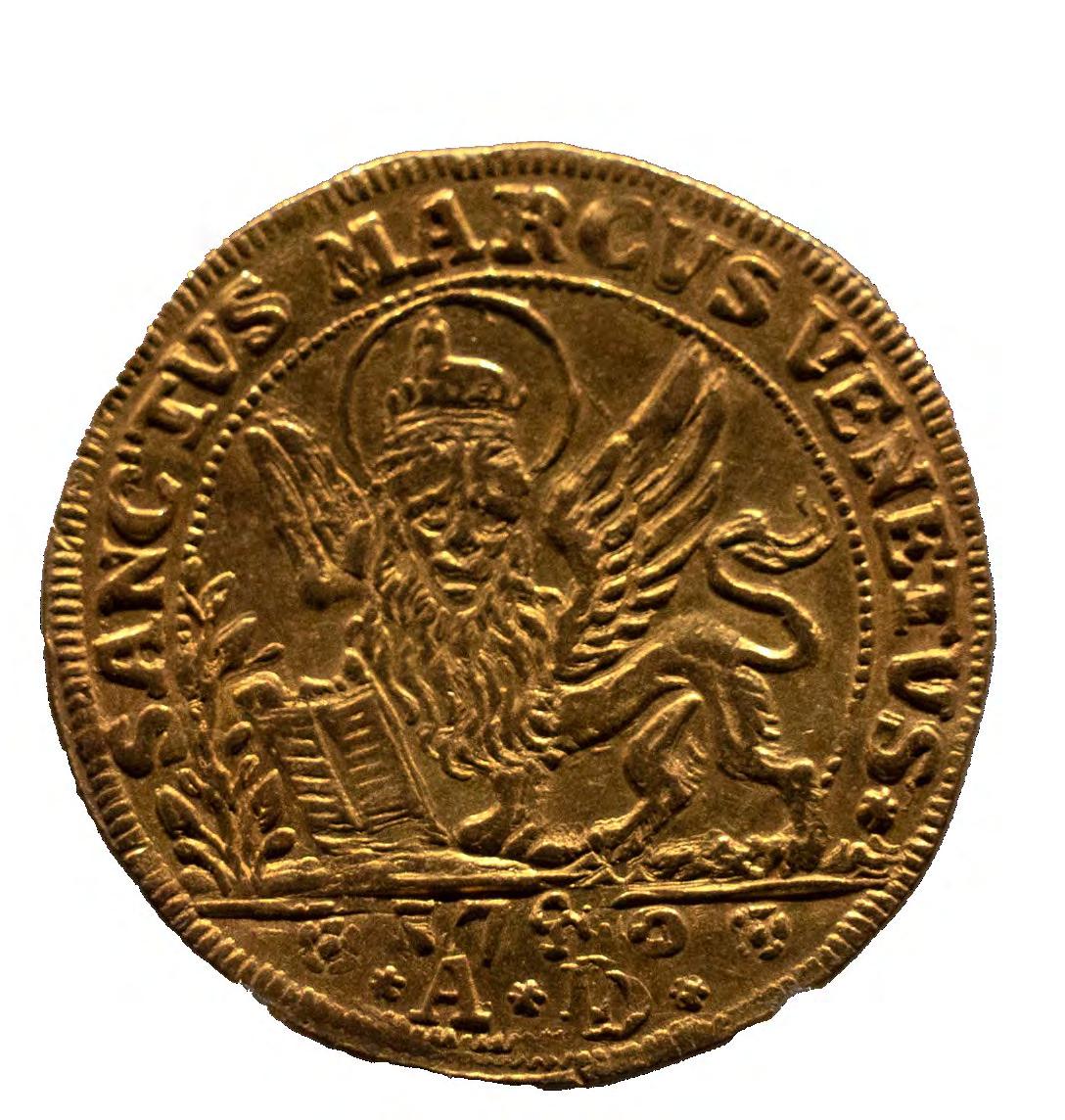 Venice was such an economic powerhouse that its coinage was used throughout Europe. From 1284, it began minting a small gold coin whose obverse invariably showed their patron saint, St Mark, receiving a banner from the current doge and whose reverse depicted Christ surrounded by a mandorla. Although it was initially called a ducat, from the 16th century, it was called a zecchino after the Venetian mint, the zecca, so named from the Arabic work sikkah meaning coin die. The quality of the coin’s design, together with its consistent design and its high 24 carat gold content made it so successful that it was used throughout Europe. In the Muslim world, it was so important that its standard was adopted for their coinage. The French referred to the zecchino as a sequin and it is from them that the English adopted the word. In 1852, long after the coin’s demise, the word sequin appeared in a French fashion magazine to describe ornamental gold disks that were applied to dresses and hair coverings from the East; presumably, they used the word sequin because of their resemblance to the Venetian coins. It wasn’t long before it was adopted into the English language. In this way, a little bit of Venetian history lives on.