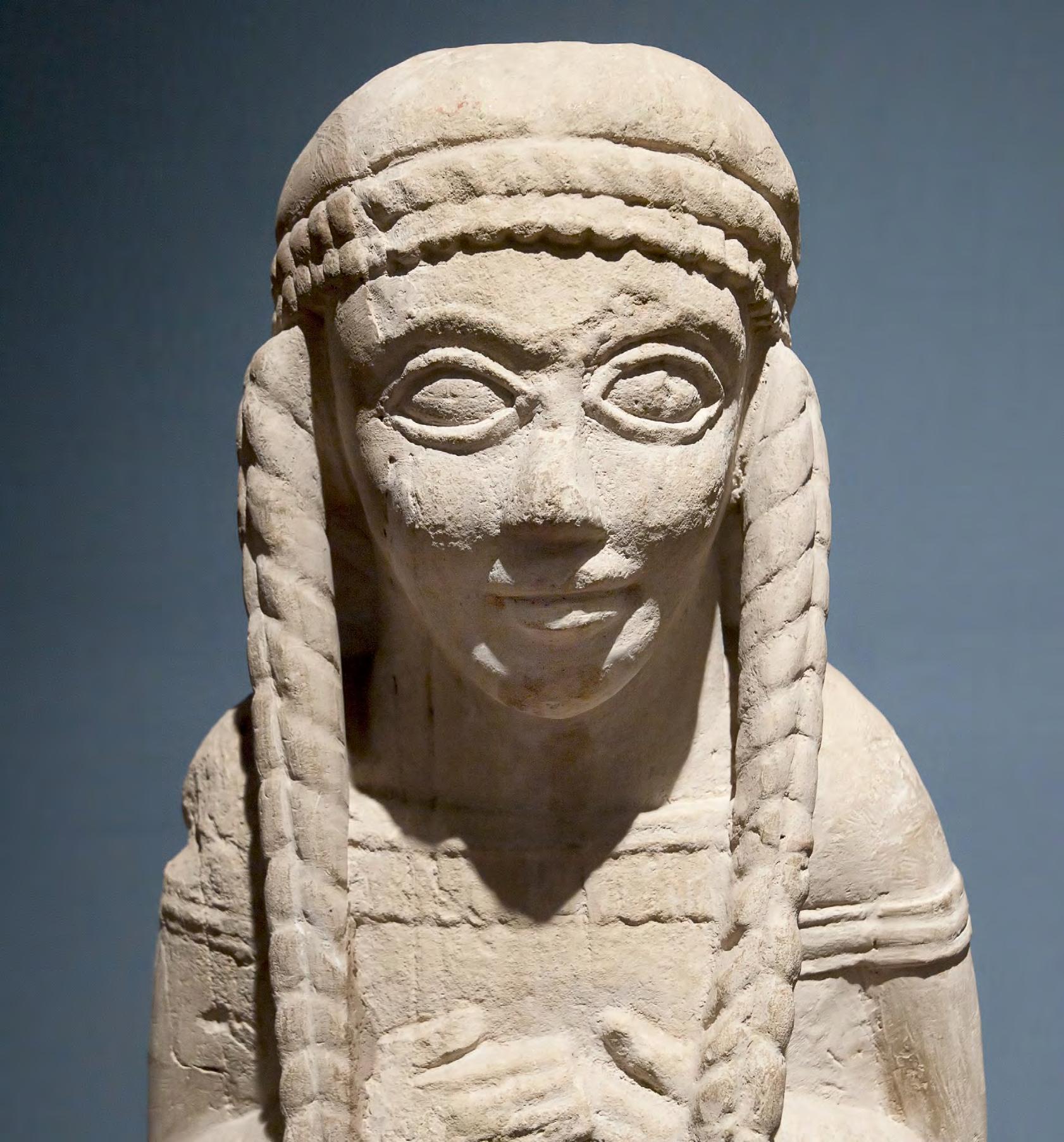 While Rome is often credited with the development of portraiture, it is their Etruscan counterparts who first developed the art. As seen on many of their tombs, Etruscans were often careful to depict people realistically, representing men with paunches and both genders with blemishes and wrinkles. One need only think of the scantily clad men reclining on the lids of sarcophagi exposing their pot bellies or of the incredible sarcophagus lid representing an elderly couple at the Guarnacci museum in Volterra. It is clear from these and from other tombs such as the exquisite tombs of two Seianti women from Chiusi that it was important for the dead to be commemorated as they appeared because that would allow them to be immortalised. At the essence of portraiture is the concept that one’s visage captures his personality, one’s persona, as can be seen by the inscription from the 3rd century tomb of Scipio Barbatus which states that his appearance matched his virtue. It is for this reason that a mask can be seen to equate to a person, something noticeable by the fact that the Etruscan world phersu meant both mask and person. This desire to capture a person through his likeness is what gave rise to the 4th century BCE youth of Fiesole or the famous Orator, the 2nd century BCE bronze togate statue depicting Aule Meteli.