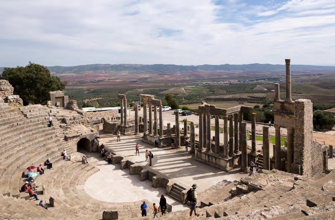 One of the best sites we’ve visited is Dougga in Tunisia. It’s an incredibly complete site with numerous temples, an expansive theatre, exceptional mosaics both on site and those relocated for preservation, plus one of the bestpreserved Roman latrines to be seen anywhere! (a fun location for a group photo).