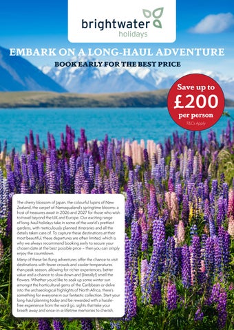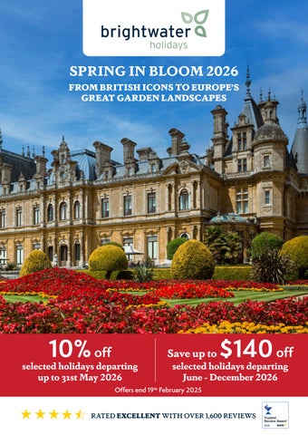 Spring is finally here and warm sunny days are just around the corner – so what better time to book one of our glorious UK & Worldwide garden holidays, a chance to reconnect with nature and enjoy the restorative power that a little bit of sunshine can provide! With spaces going fast and savings of up to £400 per person, you’ll need to act quickly if you want to secure your holiday for 2024. Within these pages you’ll find details of our fantastic garden holidays departing this year. Treat yourself to a memorable Brightwater experience on one of our best-selling overseas and worldwide holidays, or stay closer to home with a holiday celebrating everthing the United Kingdom has to offer. Our holidays are all led by experienced and friendly tour managers – among whom you will find a former Head Gardener to HM The Queen Mother at Windsor and one of Britain’s leading authorities on trees and shrubs – and they are on hand throughout to ensure the smooth running of your trip from start to finish, leaving you free to simply enjoy the experience. Please note that, as always, full details of our itineraries can be found on our website. Happy browsing!