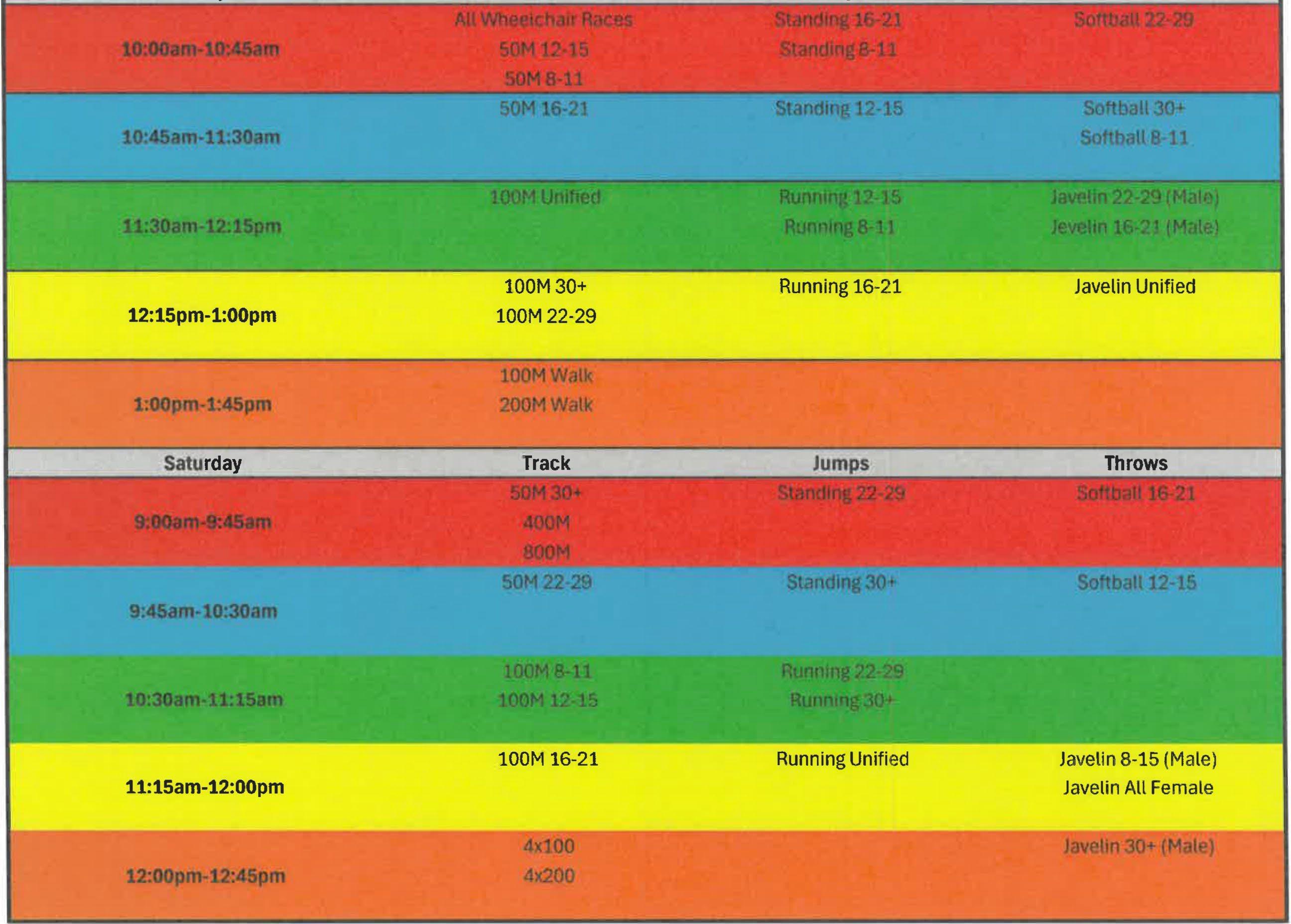 TRACK & FIELD SCHEDULE