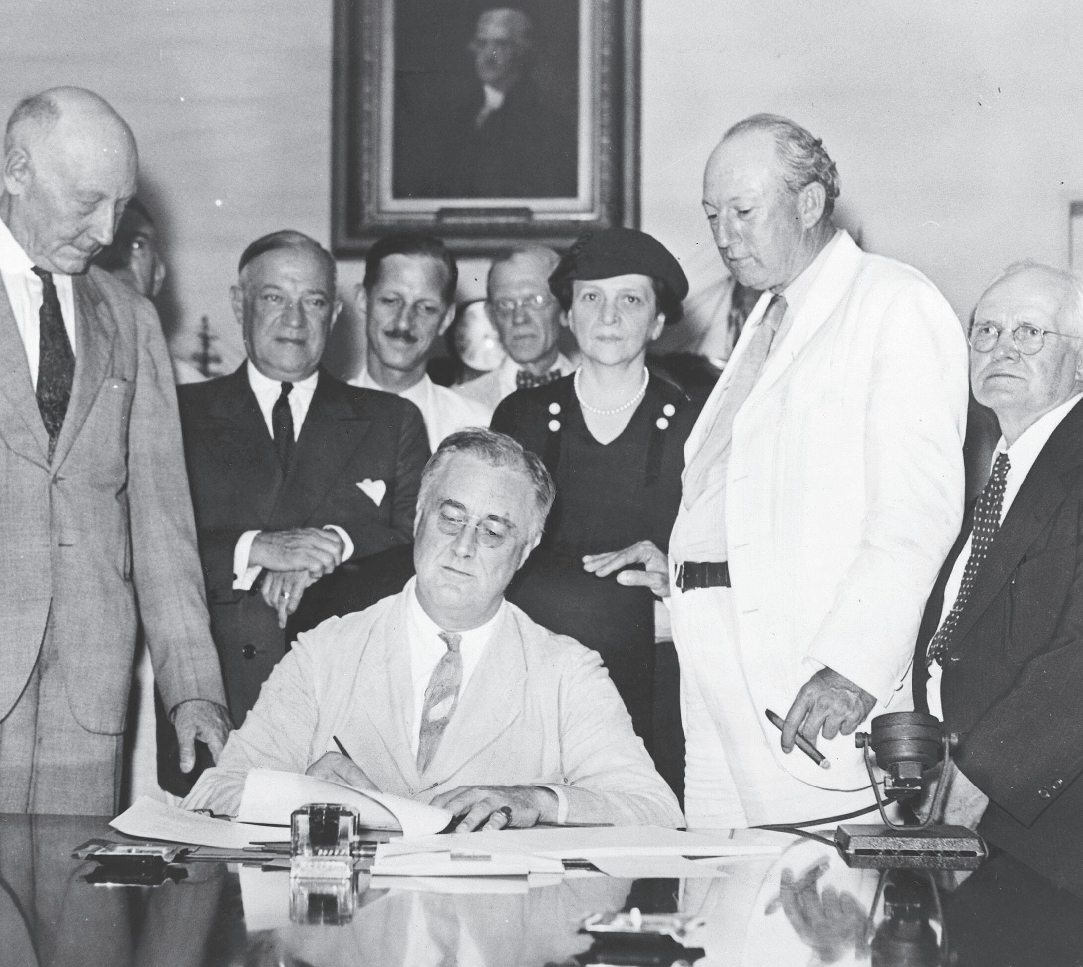 President Franklin D. Roosevelt signs the Social Security Act into