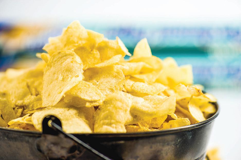 Snack foods also can be categorized as comfort foods — and potato chips (or “crisps” as they're known across the pond) are no exception. Potato chips come in di erent avors and cuts, including crinkle and kettle chips. While it’s easy to pick up a bag at the store, why not whip up a fresh batch right at home? You will have complete control over the ingredients and enjoy the freshest chips around. Try this recipe for "Homemade Potato Chips" courtesy of home cook and country living blogger Kathy from Beyond the Chicken Coop.