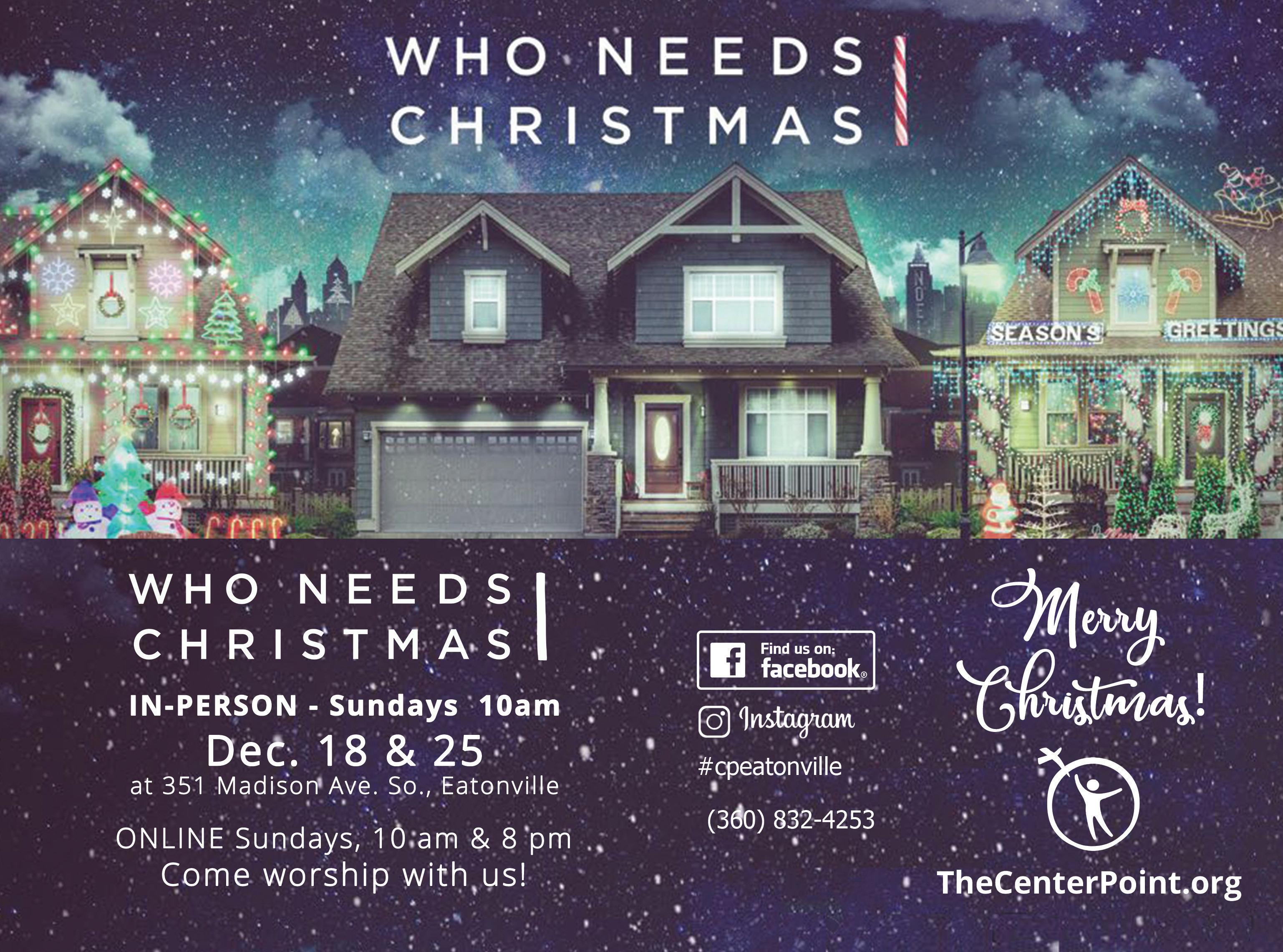 (360) 832-4253 Pastor Jonathan & Jennie Cross Pastor Adam & MaryBeth Orellana SUNDAYS: IN PERSON - 10 am ONLINE – 10 am & 8 pm Celebrate Recovery – Tuesdays 6:30 pm Thrive Youth – Wednesdays 7 pm 351 Madison Ave. So., Eatonville, WA TheCenterPoint.org