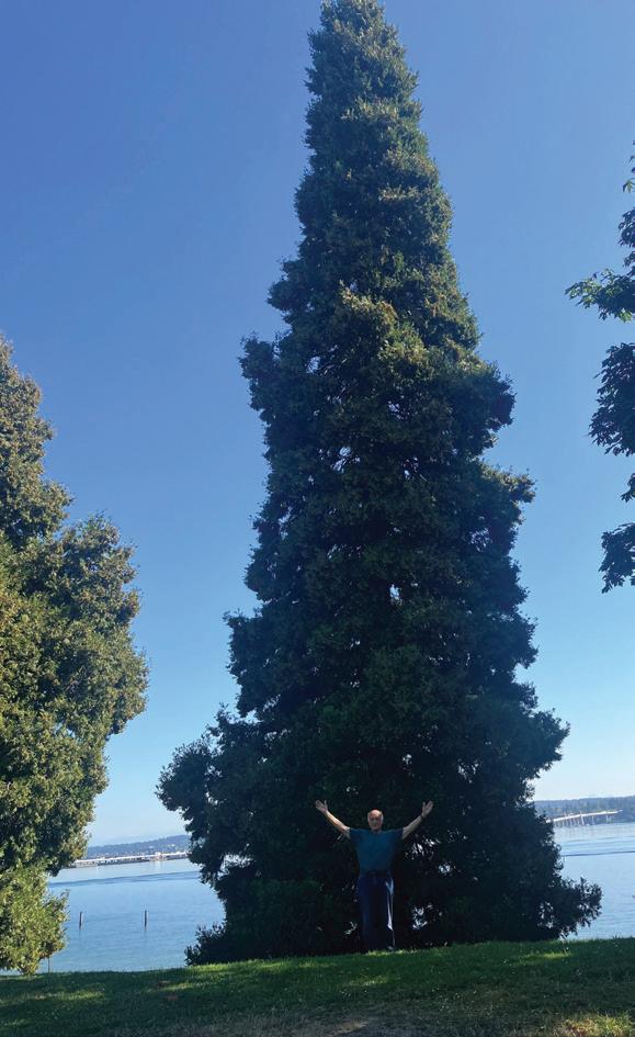 But towering on the lawn, sloping between the street down to the beach, at Madison Park are several evergreens that thrived in this weather. They are Incense Cedars (Calocedrus decurrens) .