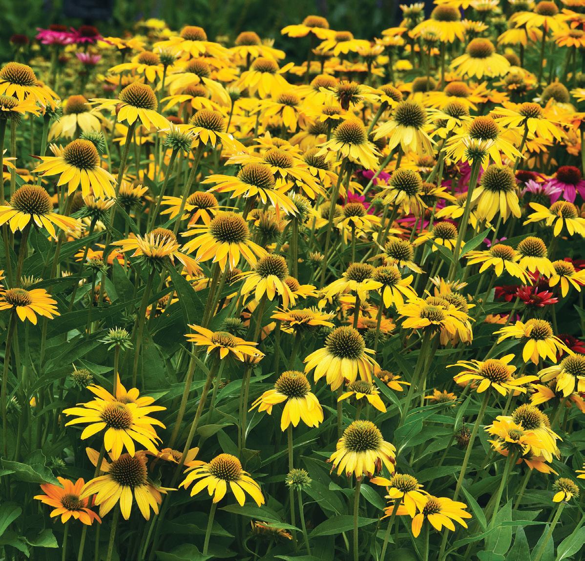 BELOW: Echinacea Artisan Yellow Ombre F1 produces golden blooms in an ombre range on the same plant and keep their color all season.