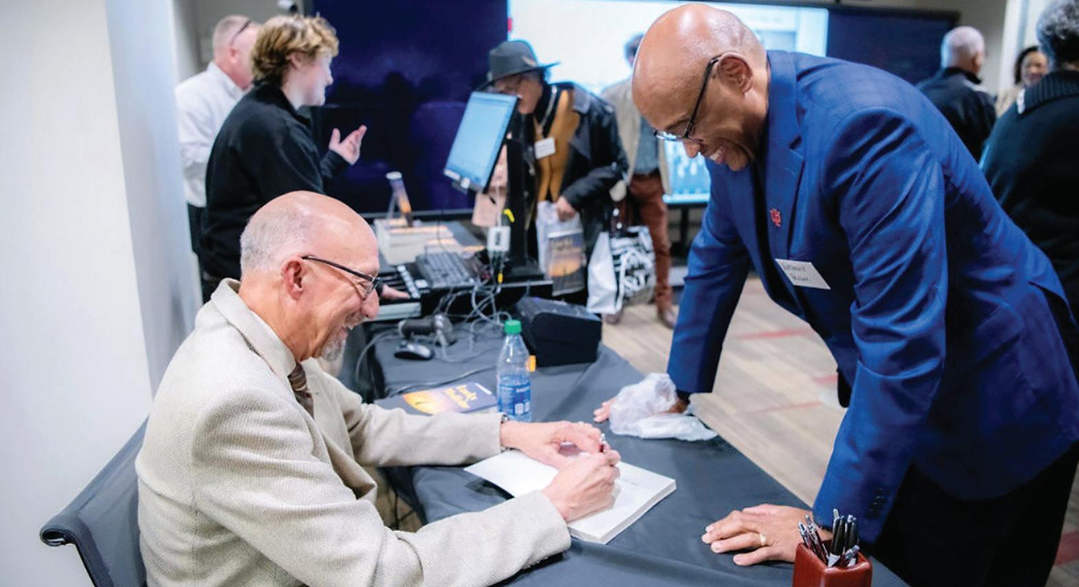 Photo courtesy of Lester Thompson Magnolia resident and retired urologist Lester Thompson signs a copy of his book ‘Lucky Medicine: A Memoir of Success Beyond Segregation’ at a book signing earlier this year hosted by his medical school alma mater, Indiana University School of Medicine, where he graduated in 1968. His book is both a coming-of-age story growing up in Indiana during Jim Crow and how he got into medical school.