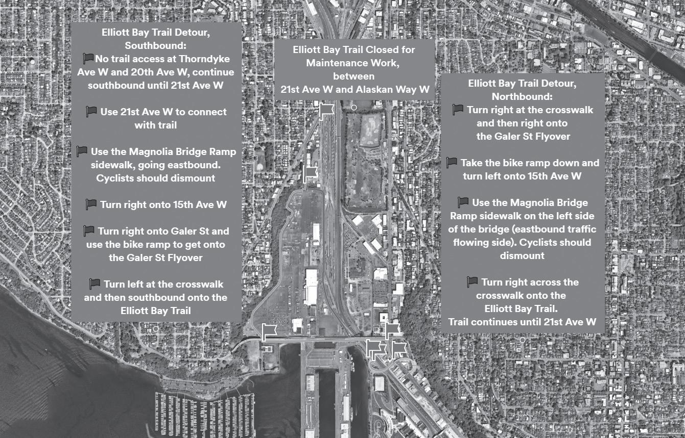 e Elliott Bay Trail will be closed for maintenance from 21st Avenue West and Alaskan Way West beginning Monday through June 9. Residents are directed to take detours travelling north and southbound.