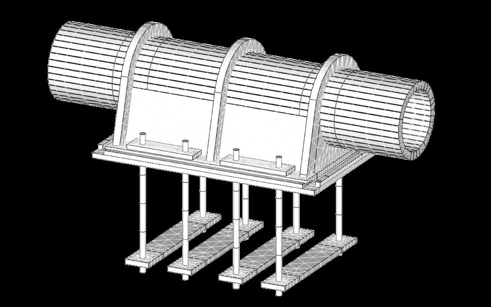 Finite element model of the unidirectionally moving pipe girder’s tie down