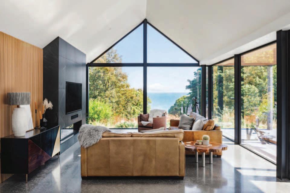 Winner of RTE’s Home of the Year in 2023, the timber frame home was designed by 2020 Architects and features stunning high ceilings, large windows to take in the views and polished concrete floors.