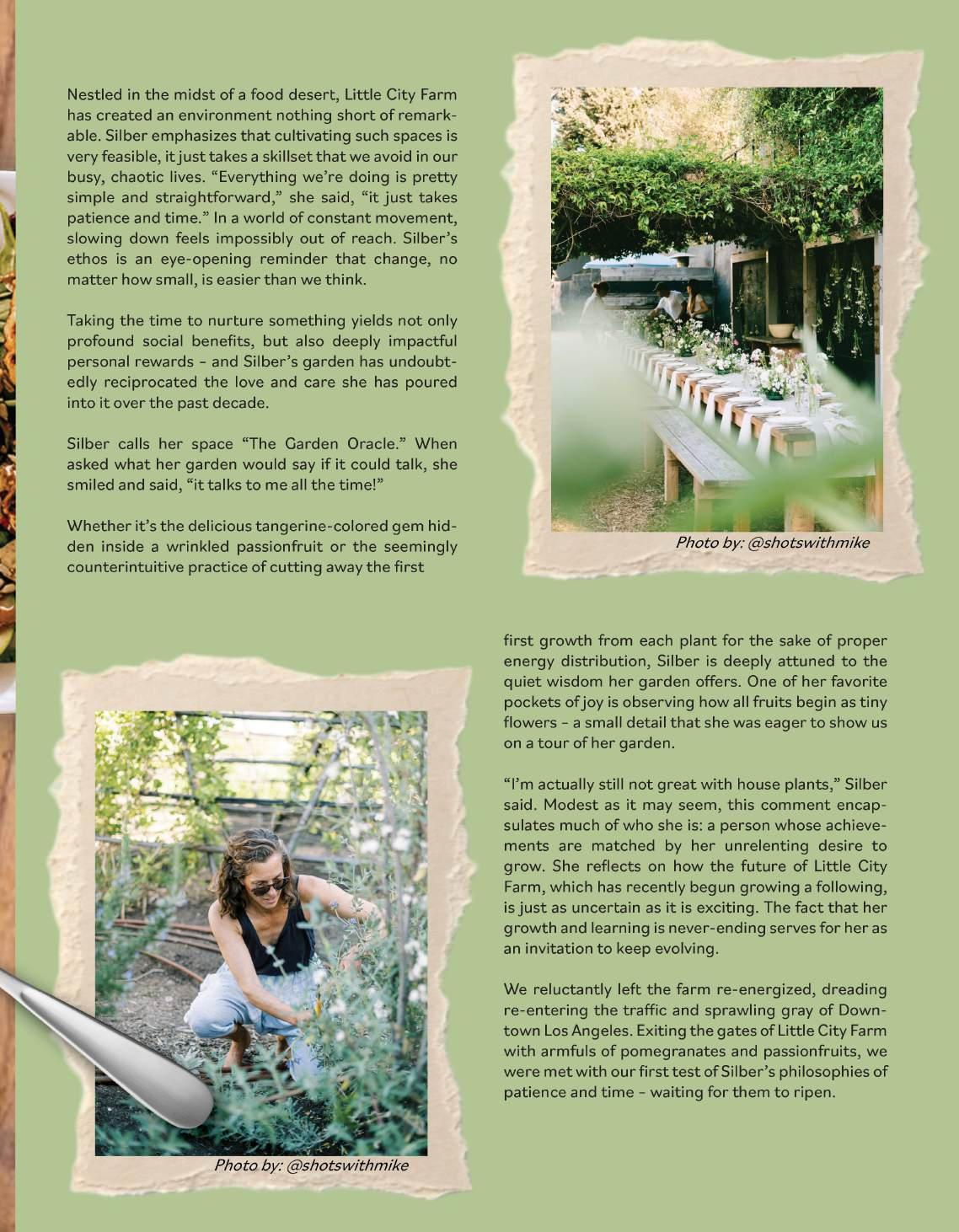 The events hosted by Little City Farm are inherently self-selecting – Silber said she noticed everyone who enters the space has a special twinkle in their eye, which she attributes to their preexisting appreciation for the planet and sustainability. The farm has served as a tranquil atmosphere for countless stunning and grounding events, ranging from personal celebrations to large-group educational experiences. Recent highlights have included an intimate sound bath meditation followed by an Ayurvedic meal, and an in-house pizza workshop. Sharing and trading things with neighbors and fellow urban farmers has been an added benefit, she said, as neighbors often stop by to exchange spoils from their gardens as well as tips and tricks of the trade. As amazing as the farm is in its own right, it is clear that Little City Farm derives its magical energy from the communities it fosters.