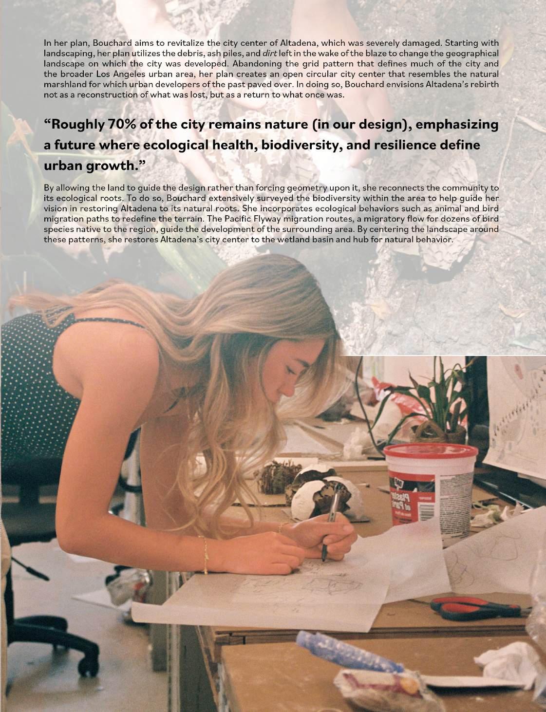 Bouchard reminds us that healing requires bold perspectives to create, not restrict. Her “tree-city” vision for Altadena invites residents to rediscover their connection to the roots in the land that once sustained them.