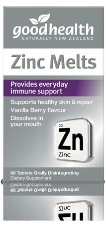 Good Health Zinc Melts are delicious vanilla berry flavoured tablets that dissolve in your mouth. Zinc is an essential mineral used throughout the body for many functions including support for the maintenance and upkeep of a healthy immune system.