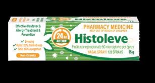Histoleve® Nasal Spray is indicated for the prevention and treatment of allergic rhinitis including hay fever and that caused by other airborne allergens such as house dust mite, mould spores and animal dander.