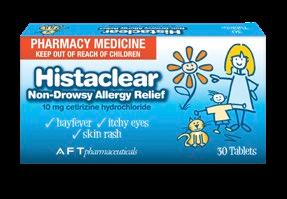 Histaclear ® provides once-aday non-drowsy relief from the symptoms of hay fever, such as runny nose, nasal and sinus congestion, itchy nose and eyes, and sneezing. It may also be used with skin allergies to relieve itching and rashes.