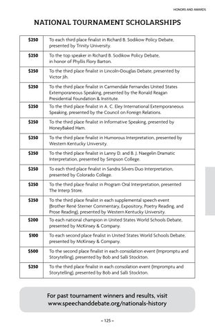 For past tournament winners and results, visit www.speechanddebate.org/nationals-history – 125 –