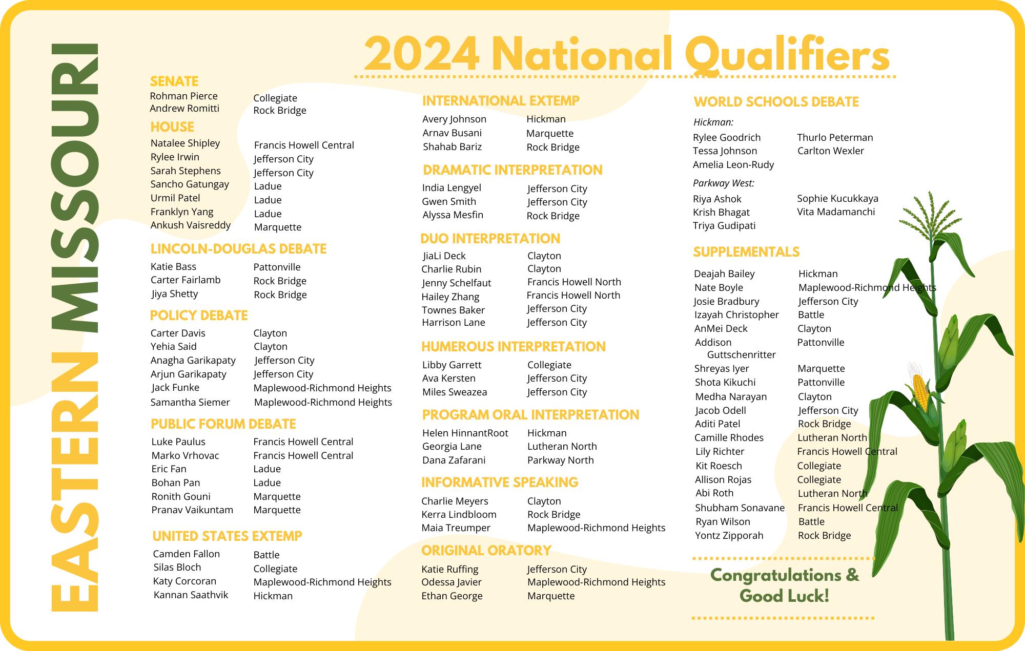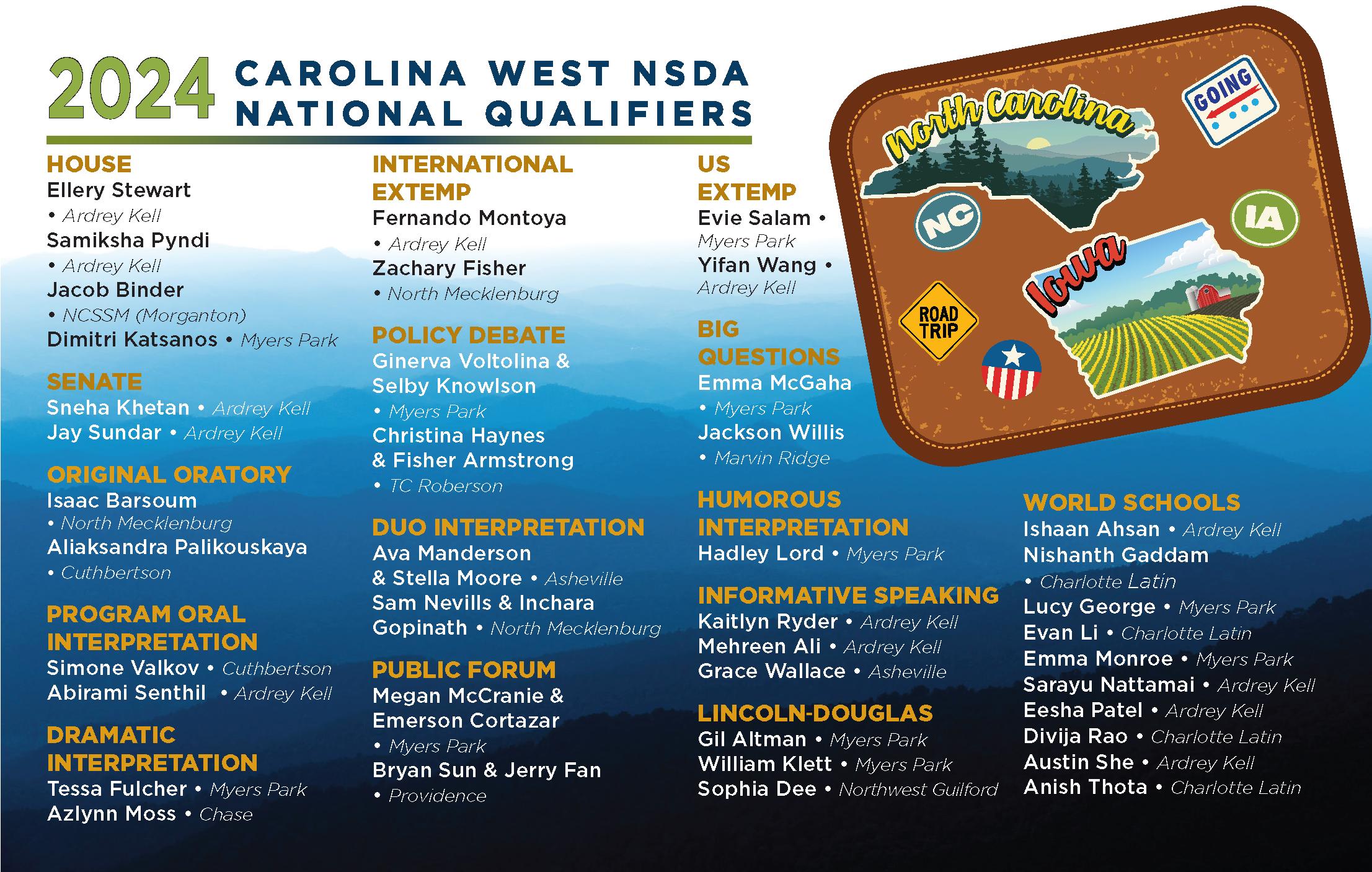 The Middle School National Tournament is an open invitational, and all middle school NSDA members are welcome to compete for a chance to be named a middle school national champion! The online registration deadline was May 15, 2024. THANK YOU TO OUR SPONSORS